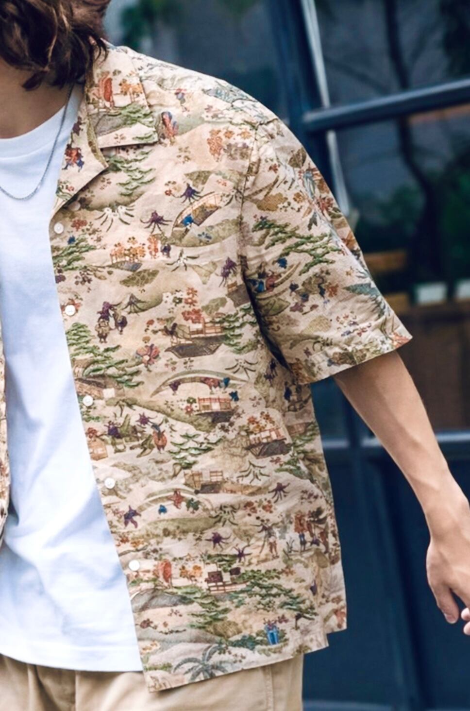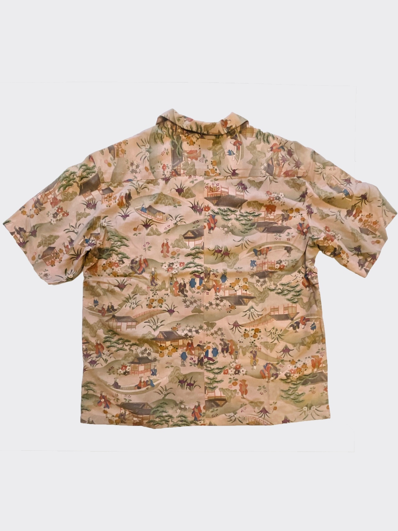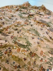 建物や自然、人々の営みが繊細に描かれた柄は、まるで一枚の絵を見るような奥行きがあります。